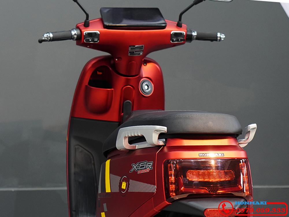 Phanh đĩa bánh trước lẫn bánh sau rất An Toàn, đèn Led bao quanh xe một bộ ánh sáng hoàn hảo. Mặt đồng hồ hiển thị Honmaki X6R Pin Lithium Có bán lẻ ở đại lý Bình Liêu là kiệt tác sáng tạo, cụm công tắc nhiều Chức Năng gọn đẹp. Hộc chứa hành lý mini bên trái, chìa khóa Thông Minh Smart key.