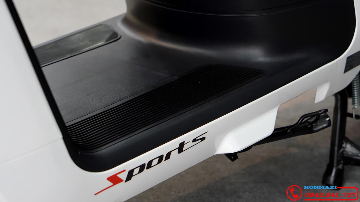 Thiết Kế sàn để chân rộng rãi thoáng, yên xe Honmaki X6R Pin Lithium Có bán lẻ ở đại lý Mường Lát lớn dài chất liệu siêu mềm. Ốp sườn xe kết nối bằng nam châm không bằng vít. Nơi Sạc Pin ấn tượng như nắp đổ xăng trên xe ô tô, Pin Lithium li-on 60V-30H có thể lắp 2 viên trên xe, tuổi thọ pin lên đến 10 năm.