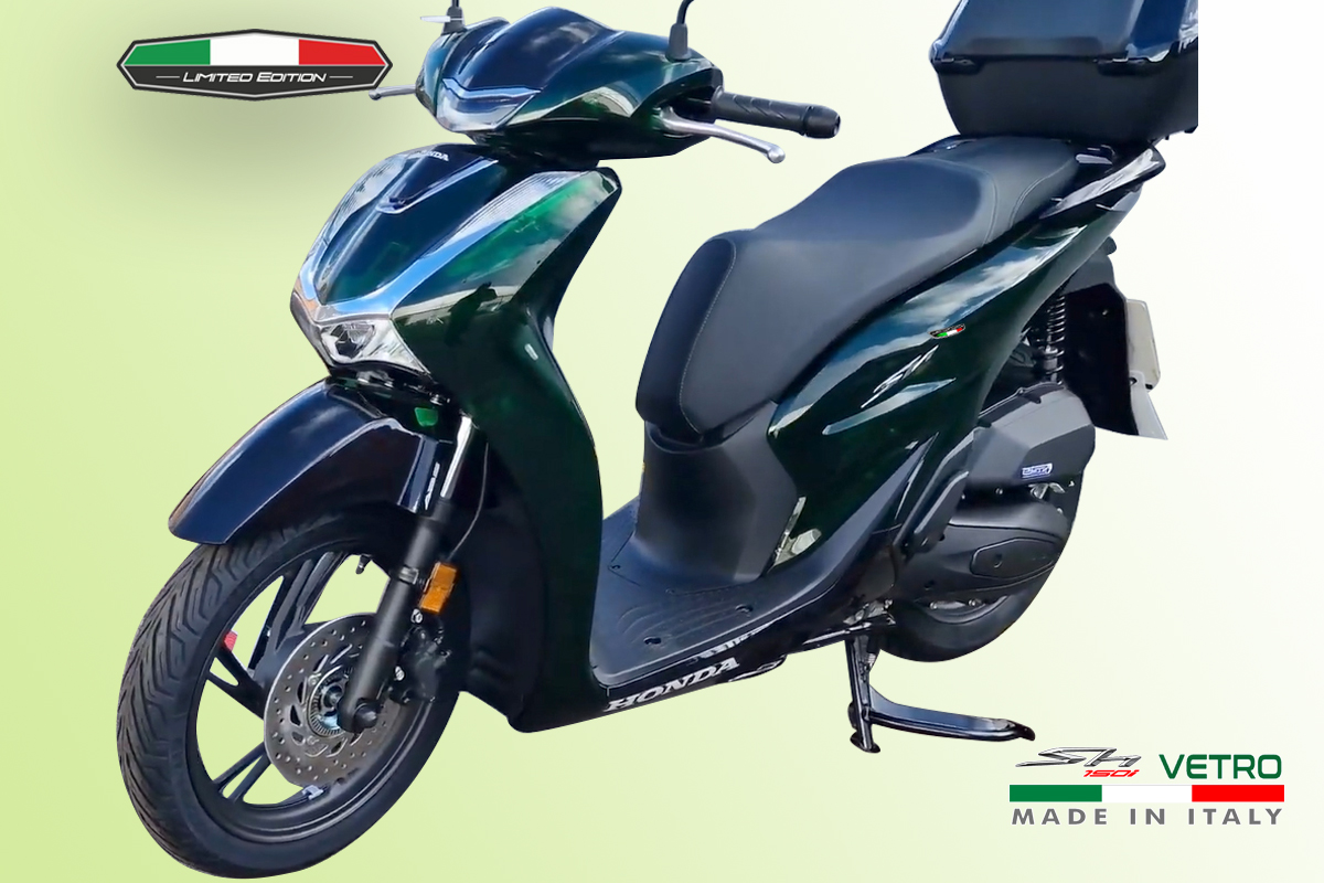 Honda SH150i Vetro 2024 Limited bản giời hạn 500 xe, công nghệ mới toanh với bộ áo bằng kính pha lê trong suốt, chiếc xe tay ga bán chạy nhất ở Ý, nhờ sự cân bằng hoàn hảo giữa kích thước, sức mạnh và khả năng điều khiển dễ dàng, được thiết kế để mang lại cảm giác lái hiệu quả và dễ chịu hơn.